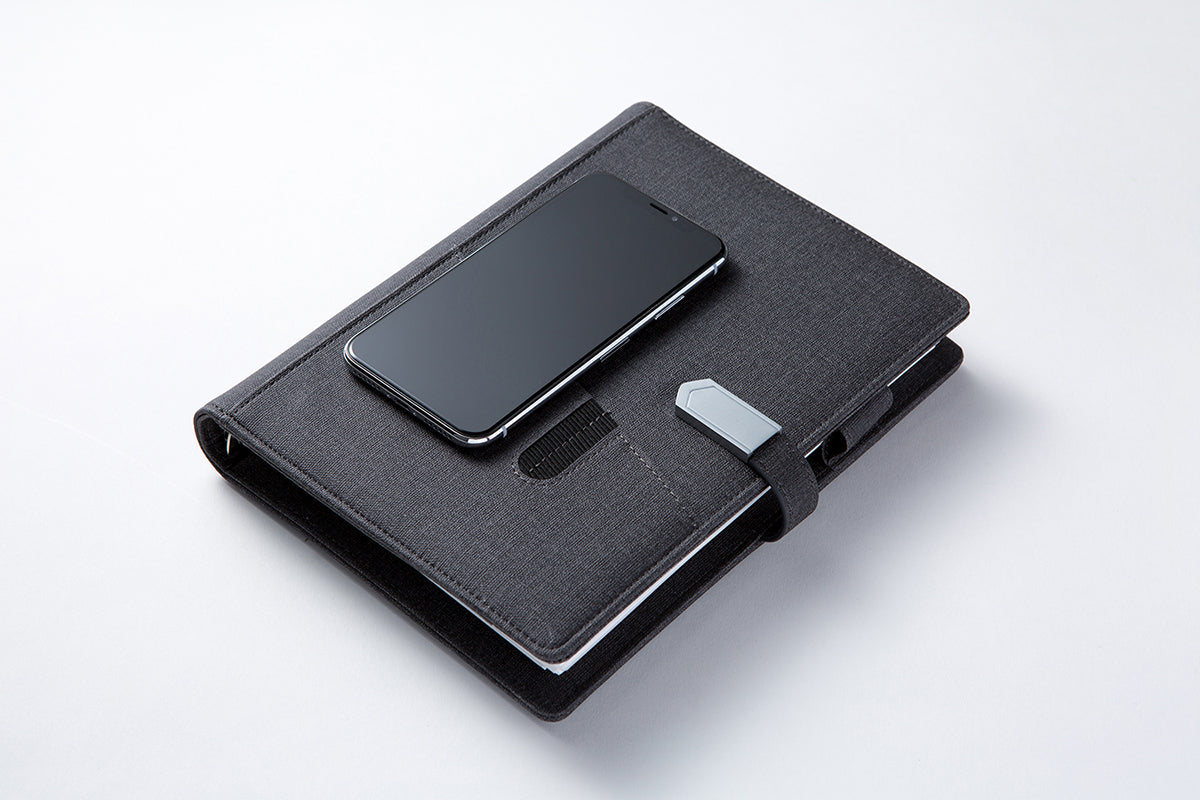 An NUT Smart Tag (sold separately) can be tucked into the front pocket to help keep track of your notes.